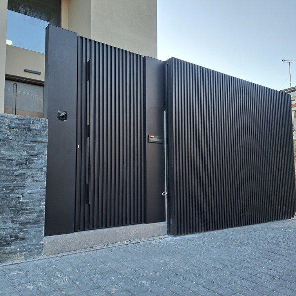 Automatic Sliding Gates & Fencing with Barcode Cladding by NEW DOOR